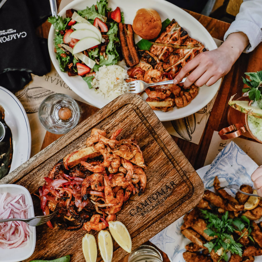 Descripción: Campomar es un restaurante de mariscos con más de 40 años de tradición, reconocido por su cocina fresca y familiar. Ofrece pescados y mariscos preparados al momento, recetas tradicionales e innovaciones culinarias que celebran el sabor del Pacífico en un ambiente cálido y relajado.
